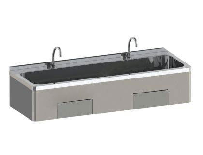 Ce lave-mains collectif à commande fémorale est particulièrement adapté à une utilisation dans un