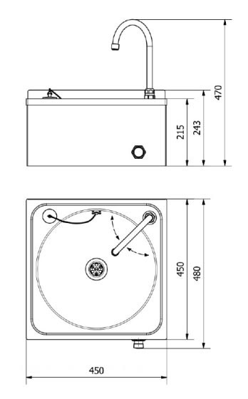 - Évier avec bouton poussoir au genou