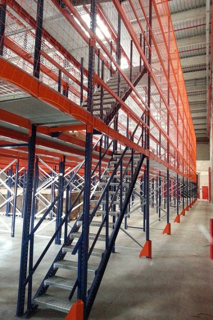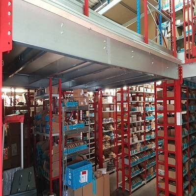 - Mettre en place 2 ou 3 niveaux intermédiaires dans vos rayonnages soit en planché bois ou caillebotis métallique, avec des escaliers et des zones de dépose palettes.