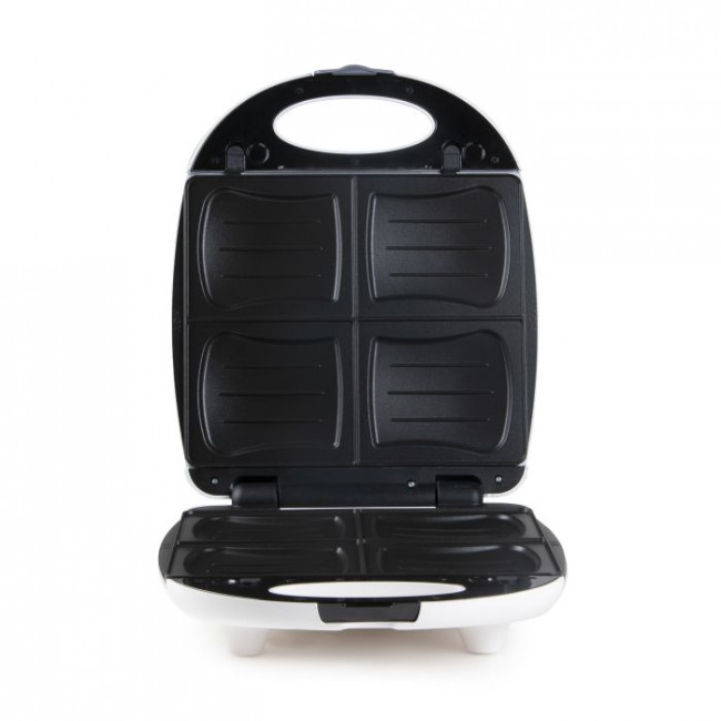 Elle dispose de deux jeux de plaques interchangeables, anti-adhésives et lavables au lave-vaisselle, pour réaliser quatre croque ou quatre gaufres en même temps.