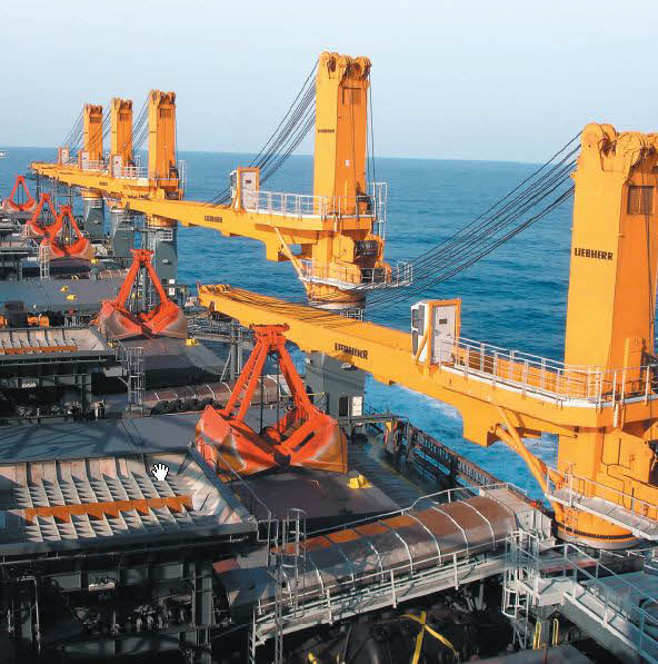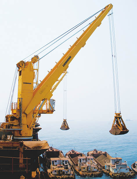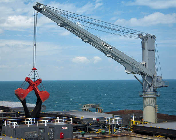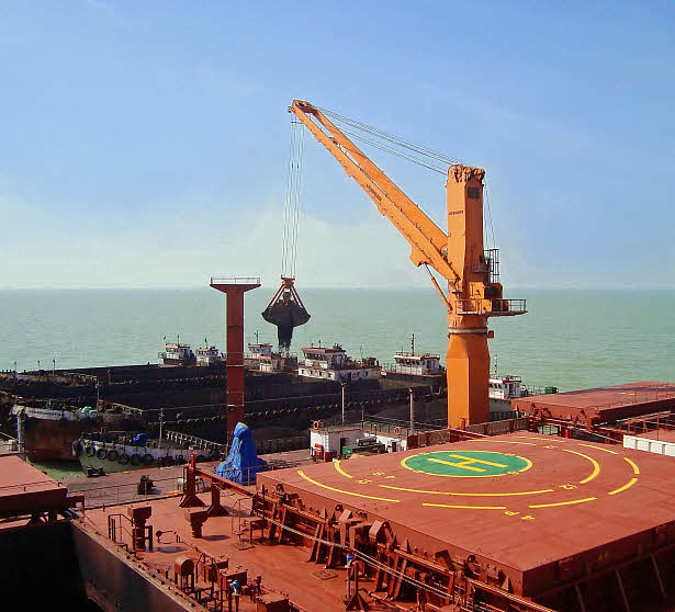 Grue de navire avec grappin à quatre câbles permet une exploitation en continu ainsi qu'une manutention tout aussi rapide qu'efficace de charbon, de minerai et de marchandises en vrac.