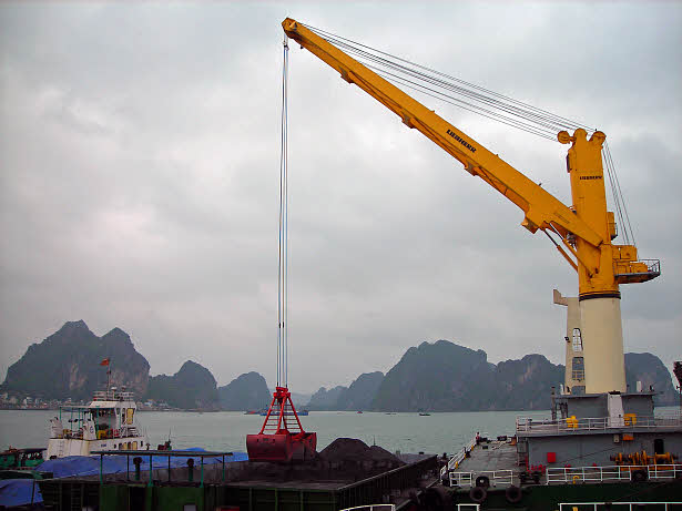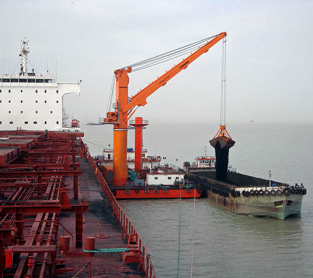 Grue de navire avec grappin à quatre câbles permet une exploitation en continu ainsi qu'une manutention tout aussi rapide qu'efficace de charbon, de minerai et de marchandises