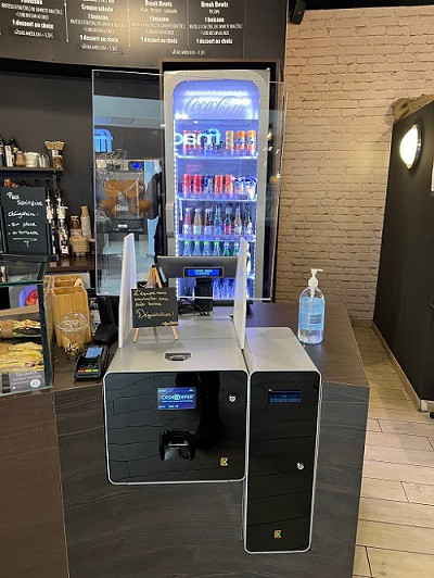 Besoin d’une borne caisse enregistreuse avec monnayeur intégré pour commande directement sur la borne.