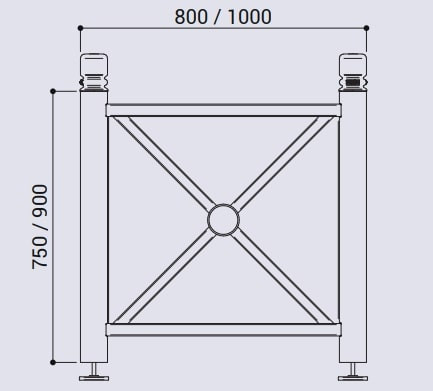 Dimensions : L.800 x l.800 x H.750 mm Châssis : tube acier galvanisé ø 76 mm Habillage : tôle d’acier galvanisé peint sur galva 2 finitions intérieures Fixation : sur pieds réglables