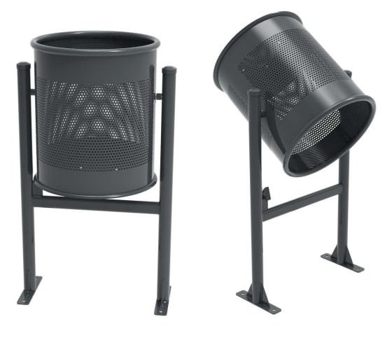 Cette corbeille de ville basculante est conçue pour résister aux intempéries et aux actes de vandalisme.