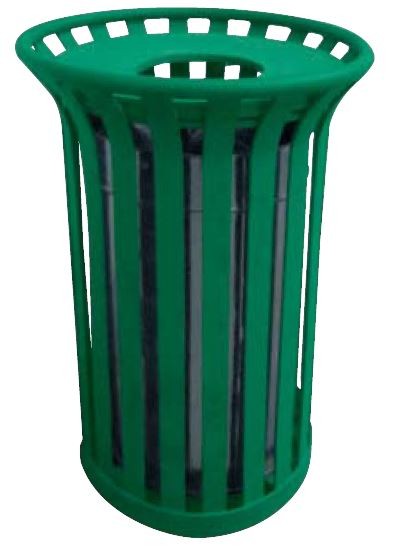 Cette corbeille de ville en fer plat est un équipement urbain conçu pour la collecte des déchets dans des lieux publics.
