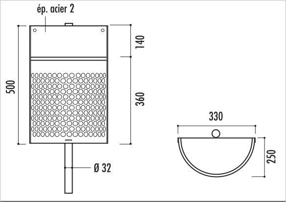 Notre corbeille métallique demi ronde intègre une tôle perforée d'épaisseur 15/10e qui garantit une résistance exceptionnelle aux chocs et à la corrosion.