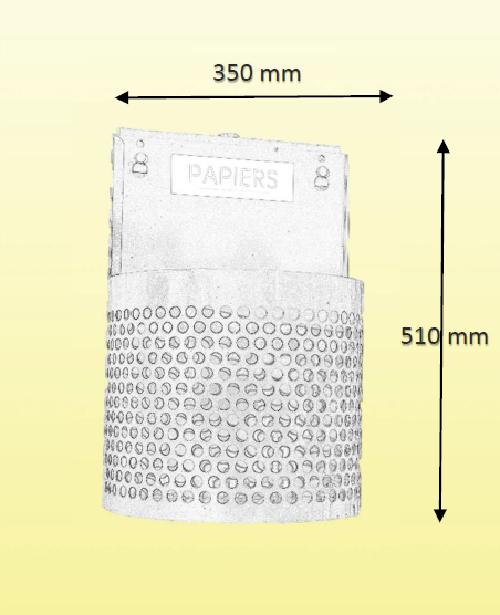 Cette corbeille papier est demi-ronde en acier avec une capacité brut de 20 L, perforation Ø 15 mm conforme à la norme NF S 54-201.