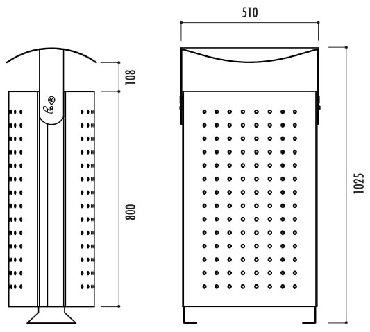 Avec ses dimensions de H.1025 x L.510 mm, cette poubelle extérieure métal offre une capacité 80 litres parfaitement adaptée aux espaces publics.