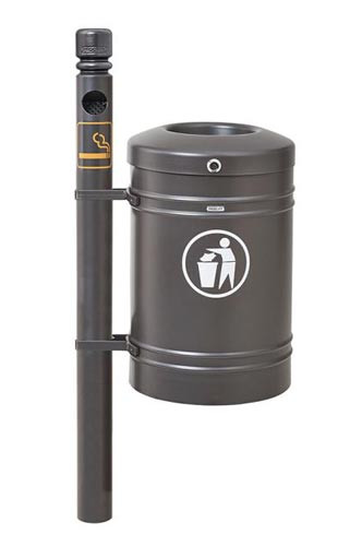 Fabriquée en acier, cette corbeille est fixée sur un pied tube d’un diamètre de 76 mm. Le poteau est disponible en version simple ou version cendrier. Il est agrémenté d’une tête avec 4 formats au choix.