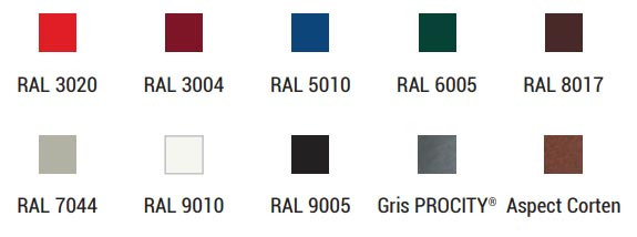 10 coloris sont disponibles, permettant une intégration esthétique dans différents environnements urbains: