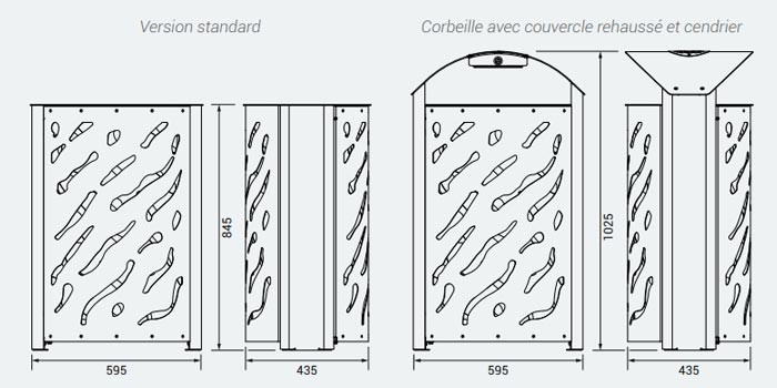 • Version : standard, avec couvercle réhaussé, avec cendrier