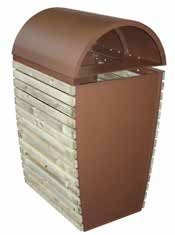2 cotés latéraux de la poubelle sont couverts par des lattes en bois de pin ou bois dur