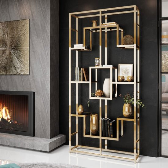 Bibliotheque etgaere en verre transparent existe en doree ou argentee