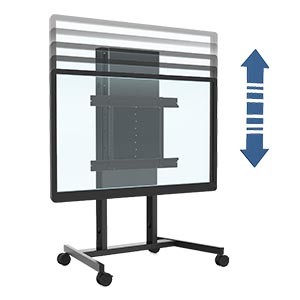 Version mobile avec support sur roulettes (4 roues dont 2 avec freins), facilitant les déplacements entre les salles et version fixe avec colonne murale à ancrer au sol pour une installation durable. Dans les deux cas, la fixation VESA assure une compatibilité parfaite avec les écrans numériques de 65" ou 75 pouces, intégrant un système de passage de câbles dissimulé pour une installation propre et sécurisée.