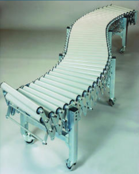 Convoyeurs à rouleaux indispensables dans les zones de chargement en bout de quai pour prolonger les installations de transporteurs fixes jusque dans l'intérieur des camions ou des wagons.