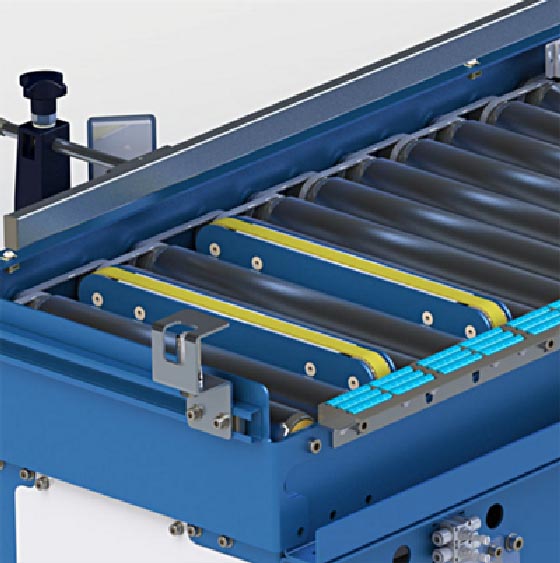 - Transfert à 90° par courroies motorisées