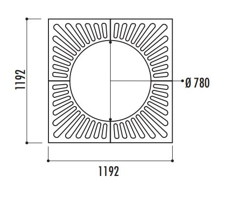 Grille urbaine de dimensions extérieures 1 000 x 1 000 mm pour un diamètre intérieur de 450 mm,