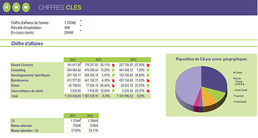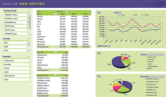 Cet outil assure le contrôle de vos résultats une fois relié à vos sources de données, assurant ainsi un reporting évolutif et précis. La lecture de vos données est assurée sous plusieurs formes : Tableaux croisés, statistiques jetables, histogrammes, lignes courbes…
