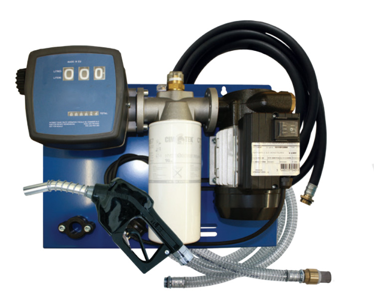 Elle est équipée d’une pompe volumétrique 230 V à palette auto-amorçante avec by-pass avec un compteur 3 ou 4 chiffres