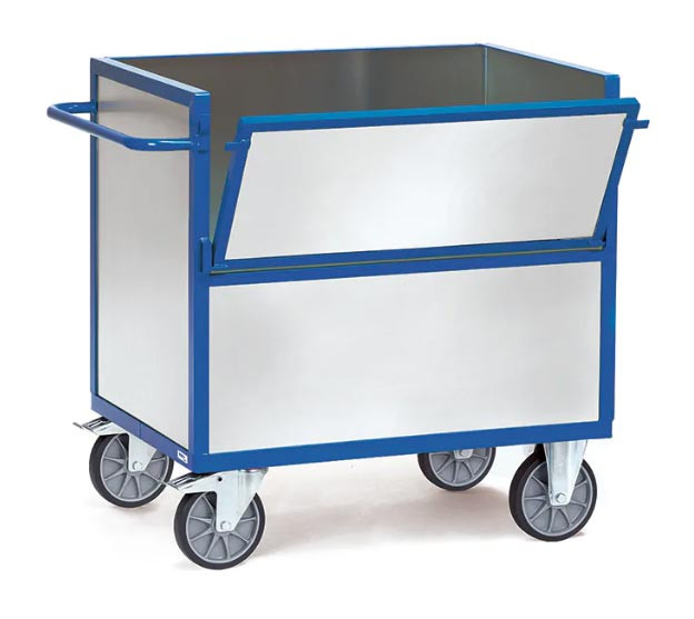 Ce chariot caisse en tôle est parfait pour le transport en toute sécurité de vos produits car il se ferme totalement.