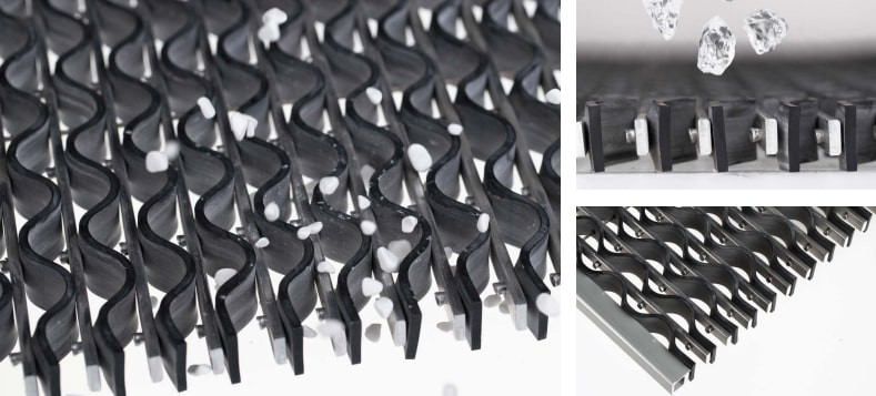 - Les lamelles en caoutchouc disposées en forme de vagues cèdent sous