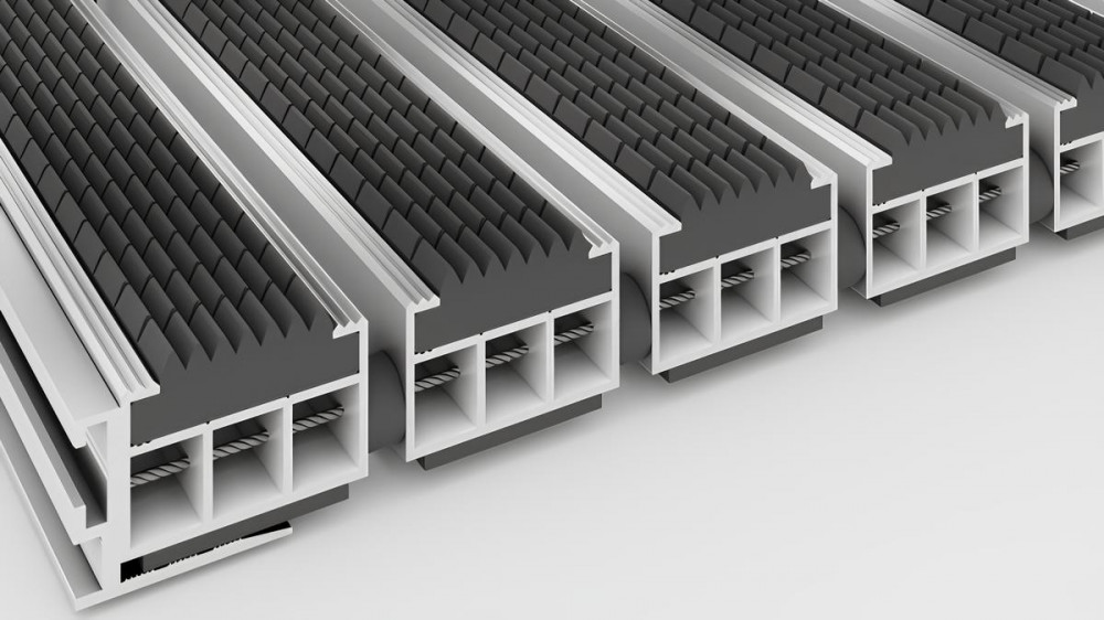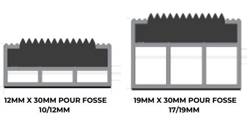 Les profilés aluminium sont disponibles en largeur 30 mm ou 50 mm, selon le niveau de trafic et les contraintes du site.