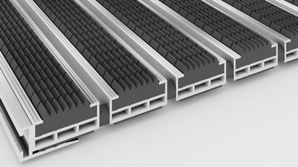 Les inserts en caoutchouc strié, très résistants à l’usure et aux intempéries, garantissent un grattage efficace des salissures, même en cas de forte affluence.