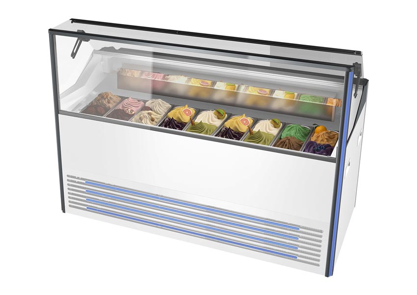 Cette vitrine à crème glacée avec bacs en inox est un matériel frigorifique idéal pour les professionnels de la glace.
