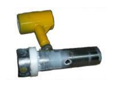 La tête d'injection sert de relais entre le marteau de forage et la barre, elle possède un raccord pour le flexible d'injection de ciment.