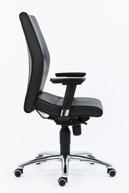 Les accoudoirs sont réglables en hauteur. Son piétement standard est en aluminium poli avec une base de 70 cm. Le réglage de la hauteur du siège se fait par un vérin à gaz. La charge maximum du siège est de 160 kg. Fabrication européenne.