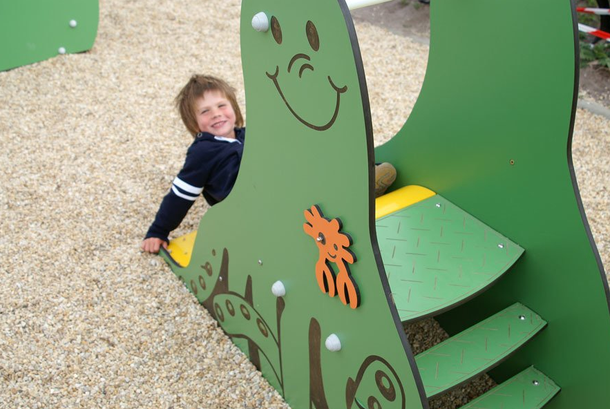 - Il est composée : d'un escalier, trois toboggans, poteaux en chêne de pays, marches et tasseaux en polyéthylène, panneaux de décors en compact HPL, plancher et une rampe en panneau multiplies revêtu d'un film antidérapant et d'une glissière polyester
