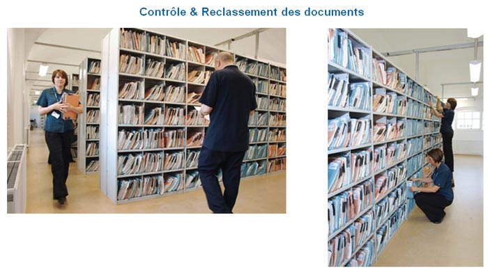 - Transfert des archives avec contrôle et reclassement des documents (classement des dossiers non respecté)