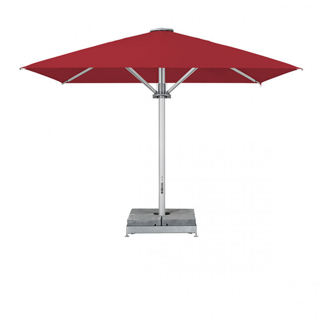 - Armature : En 4, 6 ou 8 parties en aluminium, avec mât anti-torsion (y compris nervures de renfort), avec principe d'ouverture contra-rotatif pour une ouverture confortable en seulement quelques tours de manivelle. Mât profilé GLATZ, 105 x 3mm, avec nervures de renfort. Epaisseur de paroi : 3mm. Baleines de toit : 23 x 50mm.
