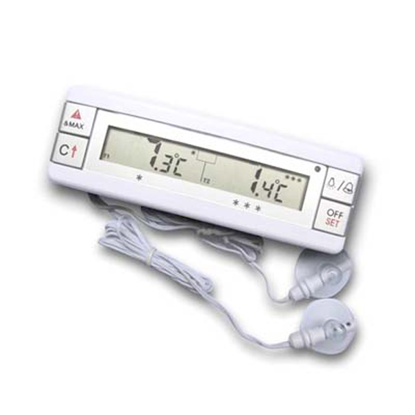 Ce thermomètre frigo double sonde et double écran permet un contrôle et une lecture simple de la température optimale du réfrigérateur et du congélateur en même temps.