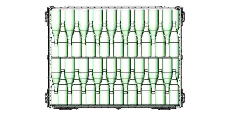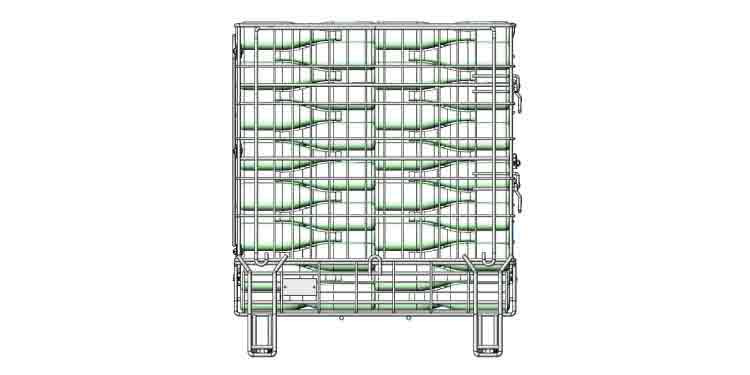conteneur en fils acier peut accueillir 500 bouteilles soit 13 lits de 36 bouteilles + 1 lit de 32 bouteilles