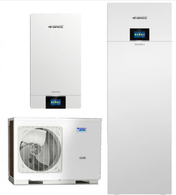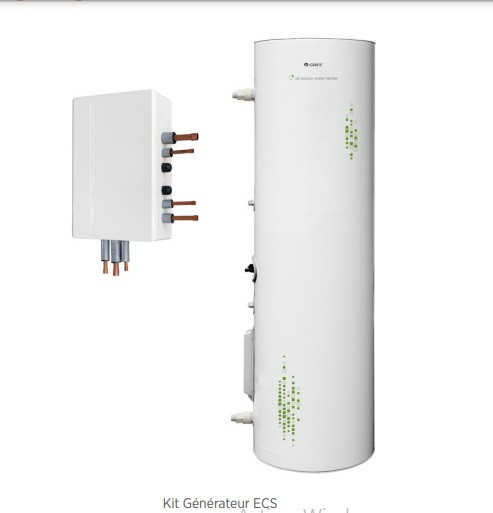 Une version tout-en-un, qui est une pompe à chaleur avec une unité intérieure intégrant un ballon d'eau chaude sanitaire de 185 litres.