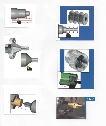 Ce tour CNC s’utilise comme un tour conventionnel industriel ou comme un tour numérique CNC grâce au système CENTROID T400 « conversationnel ».