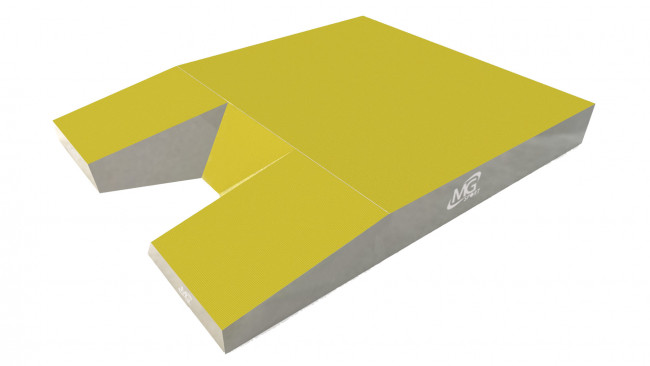 Des poignées de manipulation sont intégrées aux blocs qui composent le tapis afin de faciliter le transport lors des installations.