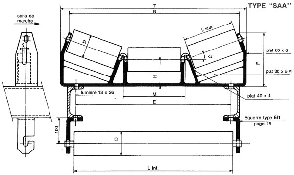 - Supports pour rouleaux, D = 60 et 70, axe 15 méplats 8, Norme E 53300 – α = 20 ou 30° en standard (autre angles à la demande)