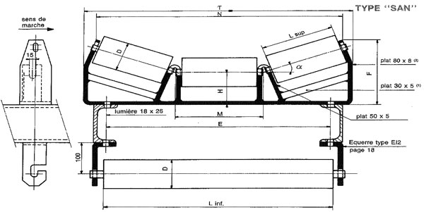 support en auge (3 rouleaux type SLU ) pour bande de 1200 mm
