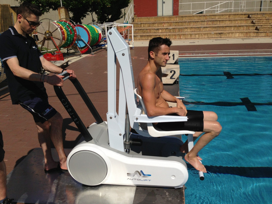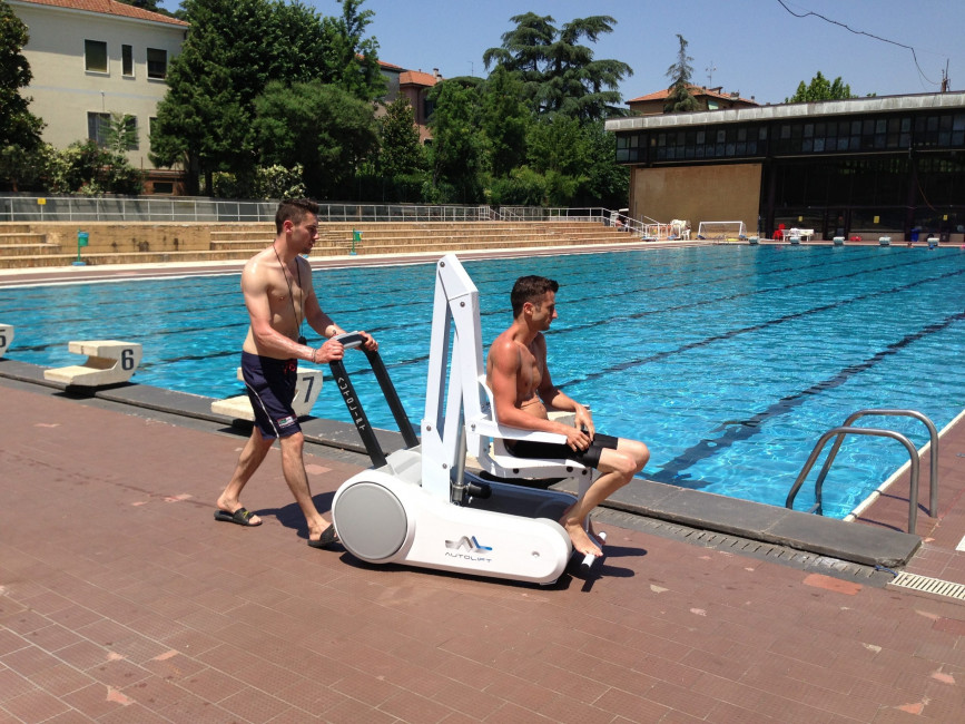 Grâce à l'élévateur mobile, les personnes handicapées et à mobilité réduite peuvent désormais profiter pleinement des bienfaits de l'eau.