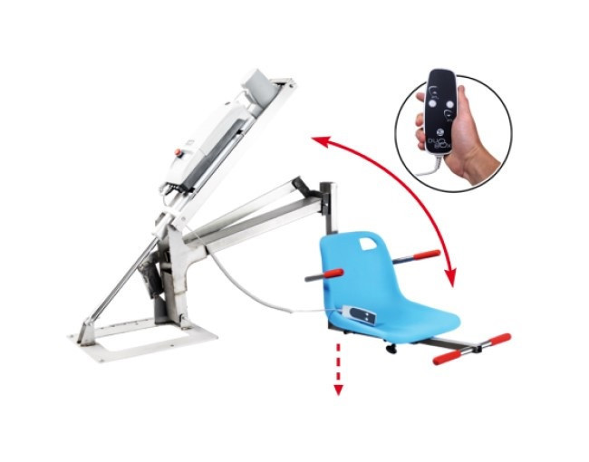 Avec son système de vérin motorisé et sa télécommande résistante à l'eau, cet équipement permet une immersion et une sortie de l'eau en toute autonomie.