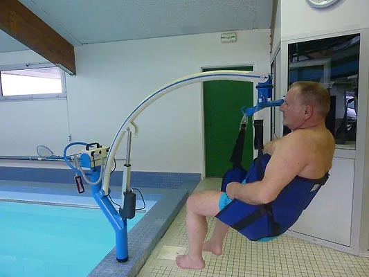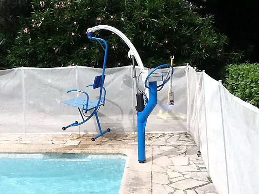 Pour un aménagement piscine pour personnes à mobilité réduite, nous proposons des rampe piscine PMR et un système de transfert efficace et simple à utiliser.