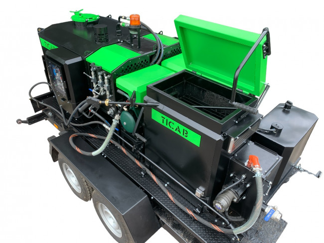 MACHINE À SCELLER LES FISSURES1. Réservoir pour le mastic bitumineux - 120 litres2. Pompe à bitume - jusqu'à 10l/min, 5bar3. Canne de pulvérisation manuelle avec tuyau de 4 m sans chauffage4. Agitateur manuel5. Chauffage du mastic avec un brûleur diesel6. Contrôle du chauffage - automatique7. Système de purgePULVÉRISATEURS D'ÉMULSION DE BITUME1. Réservoir pour l'émulsion de bitume - 750 litres2. Pompe - 36l/min, 2bar3. Chauffage de l'émulsion par brûleur diesel4. Contrôle du chauffage - automatique5. Canne de pulvérisation manuelle avec tuyau de 4 m6. Largeur de pulvérisation - 1,7 m7. Rinçage du système 8. Système de purge
