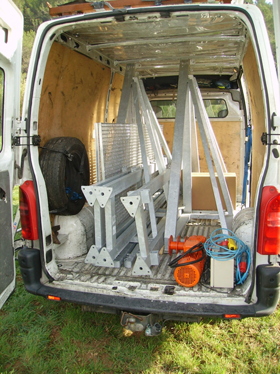 Le basculement du mât en position verticale se fait par l'intermédiaire d'un « tire fort » manuel qui ne nécessite pas l'utilisation d'une échelle.