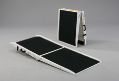 Grâce à l'aide des autorités gouvernementales et des associations pour personnes handicapées, nous avons pu concevoir et développer ces rampes qui permettent aux fauteuils roulants (manuel ou électrique) et aux scooters électriques de dépasser facilement les marches.