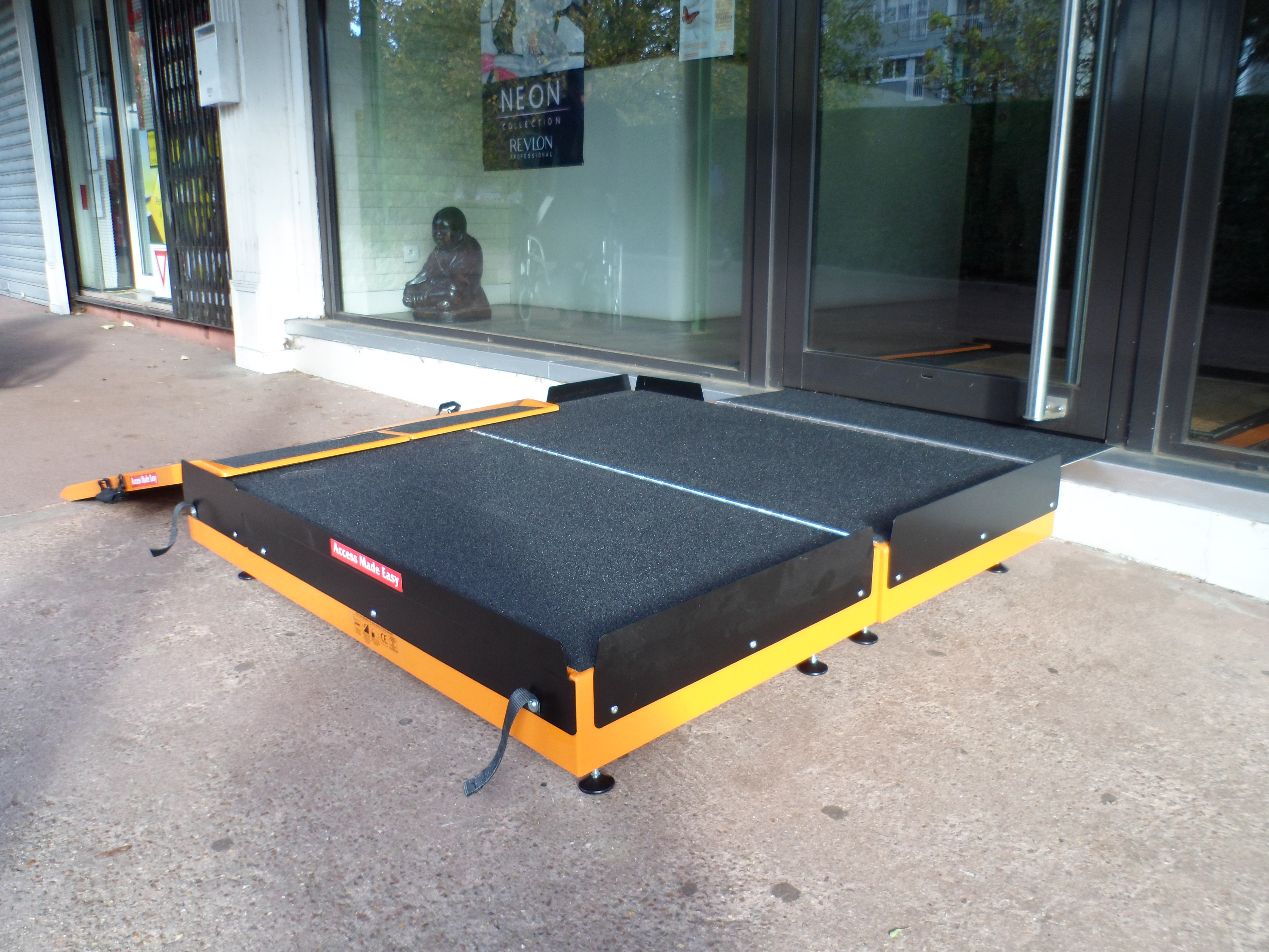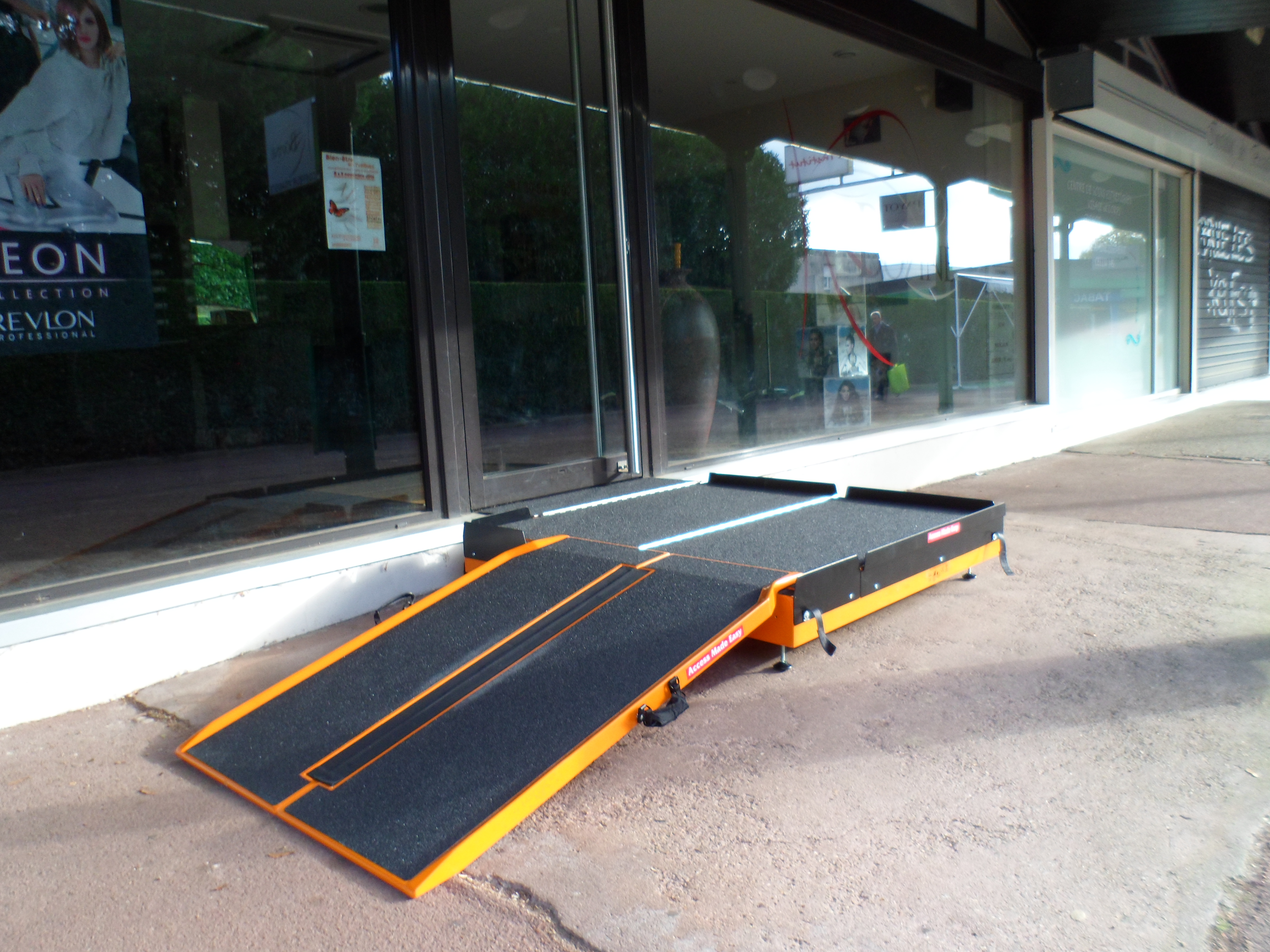 30/10/2024Rampe accès handicapés amovible accès parallèle. Dénivelé entre trottoir et sol intérieur magasin 15 cm.