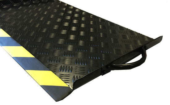 La rampe est réalisée en aluminium à damier, et peut être placée à l’entrée pour franchir les seuils en extérieur ou en intérieur :