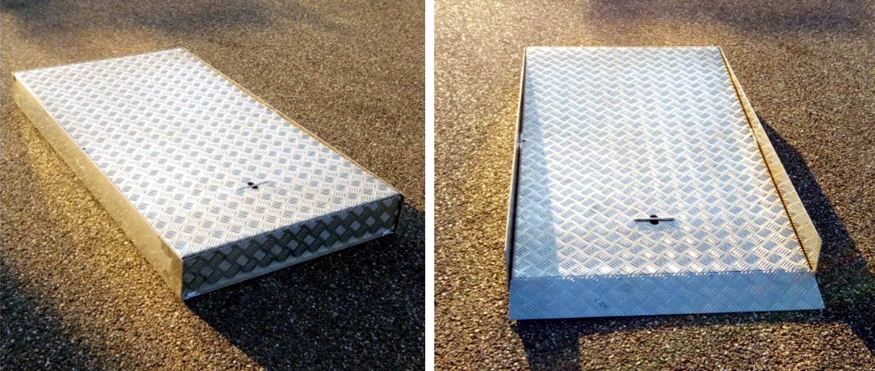 - 1 rampe encastrable dépliable antidérapante finition larmée pour une charge de 300kg.